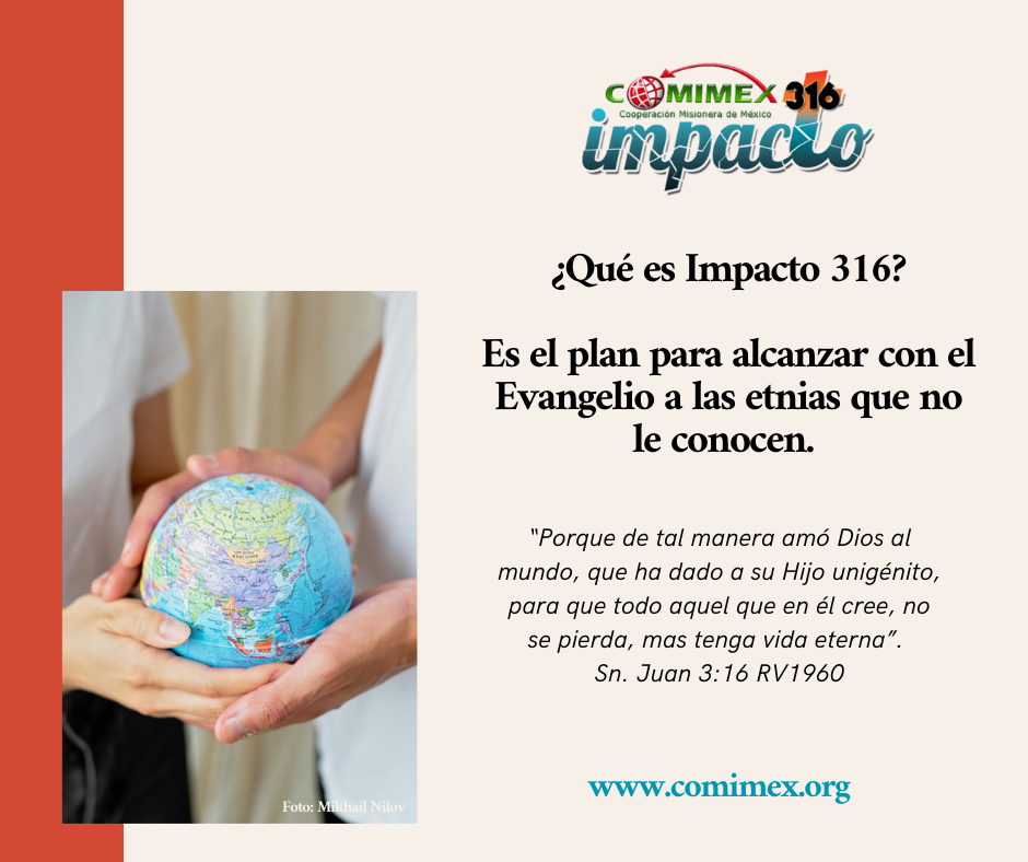 Impacto 3:16, es el plan para alcanzar con el mensaje del Evangelio a las Etnias Totalmente No Alcanzadas que no le conocen.  Se fundamenta en el versículo emblemático de San Juan 3:16, el cual está basado en el impacto que Jesucristo, como el sacerdote eterno y sacrificio perfecto eficiente y suficiente, tiene en la vida de aquellos que creen en Él.